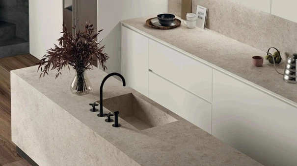 A mészkő konyhapult természetes, elegáns megjelenést biztosít, azonban érzékenyebb a savas anyagokra.